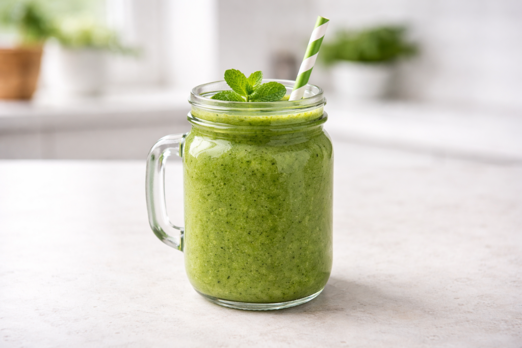 O abacate dá gordura boa e textura de sobremesa séria. Os espinafres trazem micronutrientes e aquela sensação de “o corpo recebeu coisas úteis”. A água faz o óbvio que quase ninguém trata como óbvio: ajuda a criar fluxo.